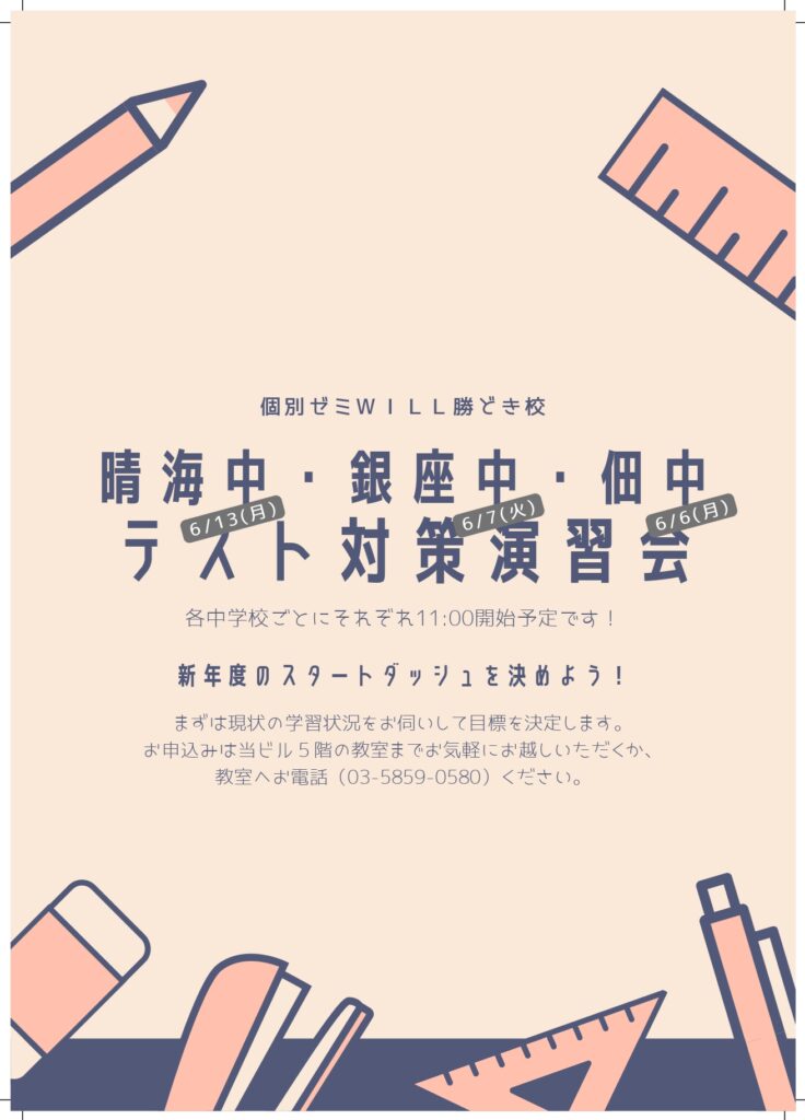 6月には体育祭が予定されていますが、その振替休日を利用してテスト対策演習会を開催します!