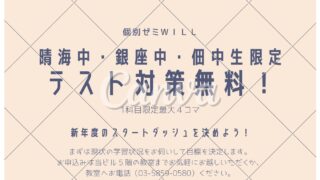 こんにちは。佃中の生徒のみなさん、期末テストお疲れ様でした。手応えはどうでしたか?返却されたら結果に一喜一憂するだけでなく、出来たこと、出来なかったことを分析して解き直しをしましょう。晴海中、銀座中は週明けからテストですね。◇テスト前は毎日...