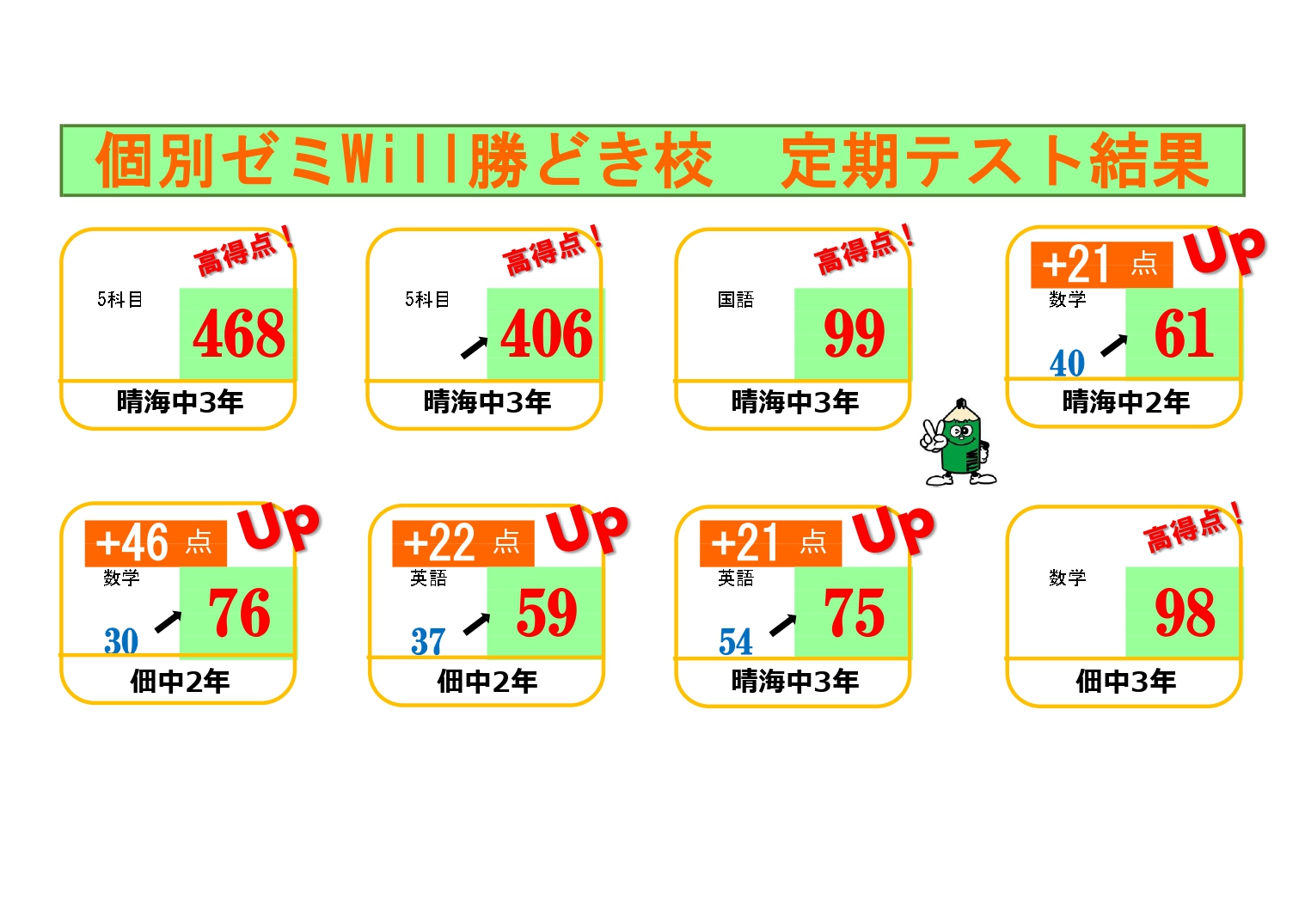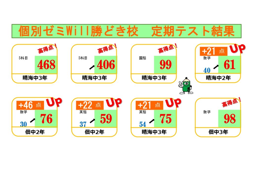 勝どき校公立中の期末テストが終了し、結果がほぼ返ってきました。