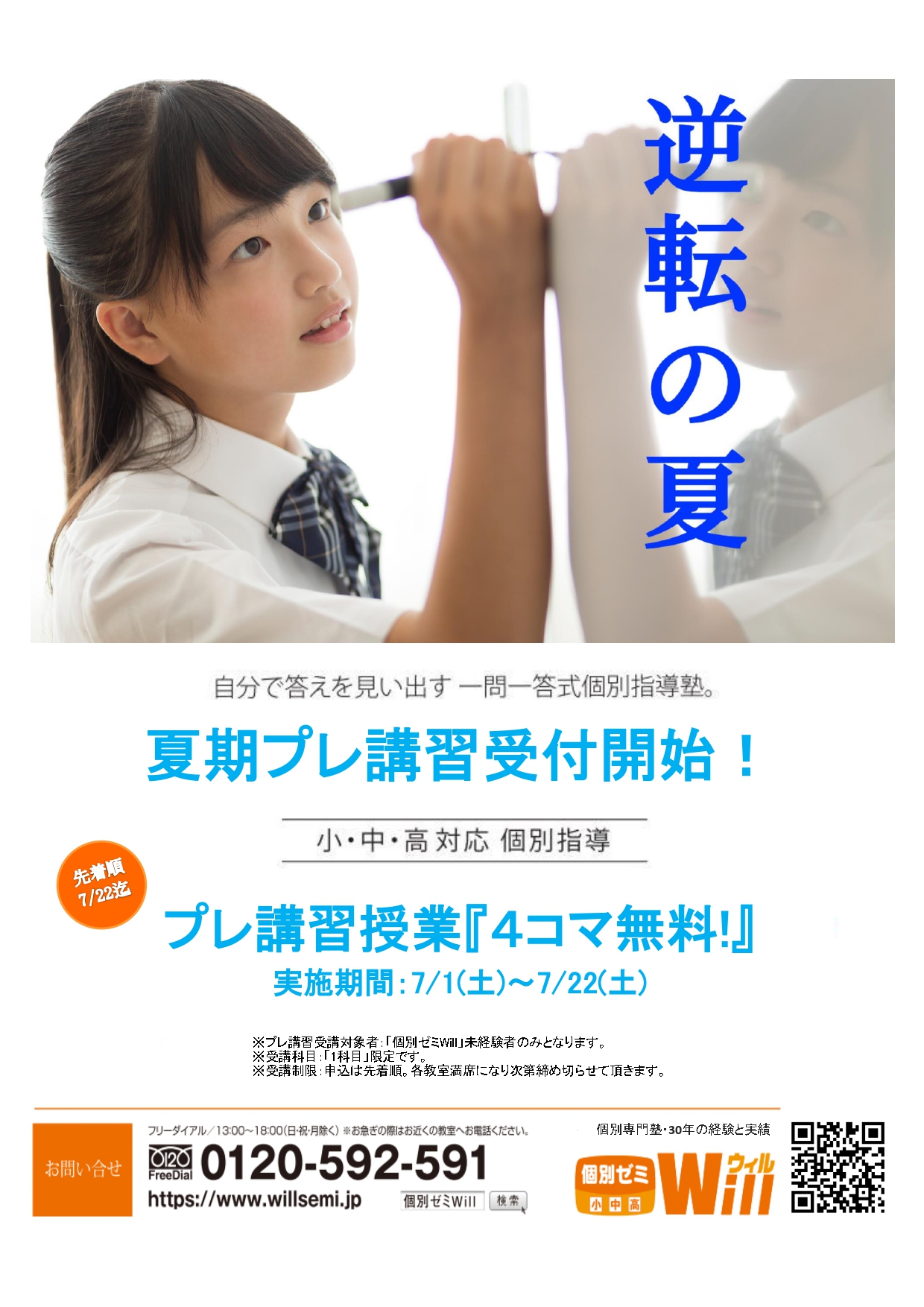 勝どき プレ講習締切間近! 勝どき校 X Facebook はてブ LINE Pinterest コピー 2023.07.15 残り1週間となりました! 夏休みの学習計画が決まっていない方、期末テストで結果が思わしくなかった方は是非!!