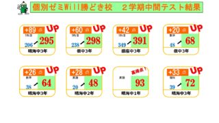 勝どき校 勝どき 2学期中間テスト結果 こんにちは。公立中では2学期中間テストが終了しました。中3生はこの2学期で最終的な内申点が決まる、とあって全体的に得点が上昇した生徒が多かったです。よく頑張りました!1か月後には入試前最後の定期テストになる期末試験。受験生以外も頑張っていま... 2023.10.13 勝どき校