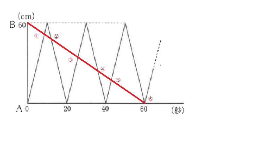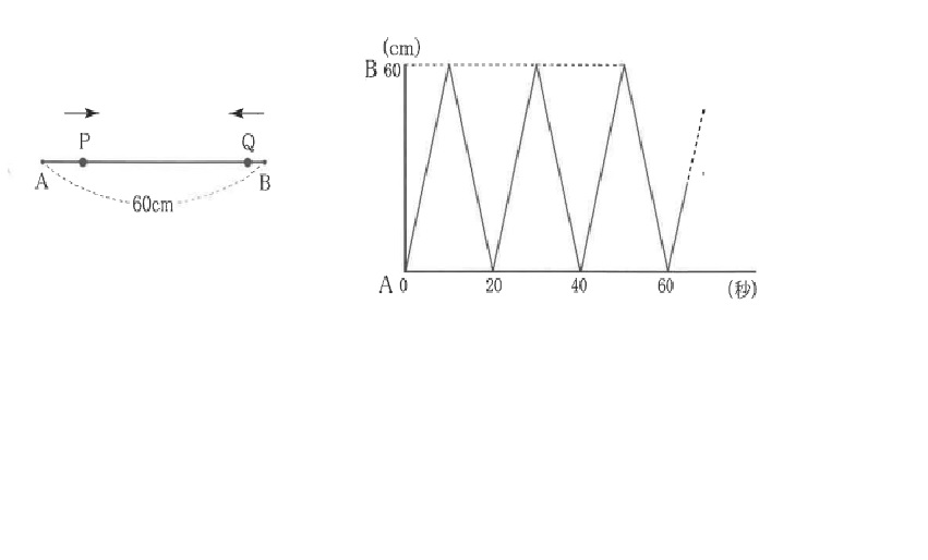 また、60cm÷毎秒2cm=30秒 … (点Qが片道にかかる時間) よって点Qの運動もグラフに表すと